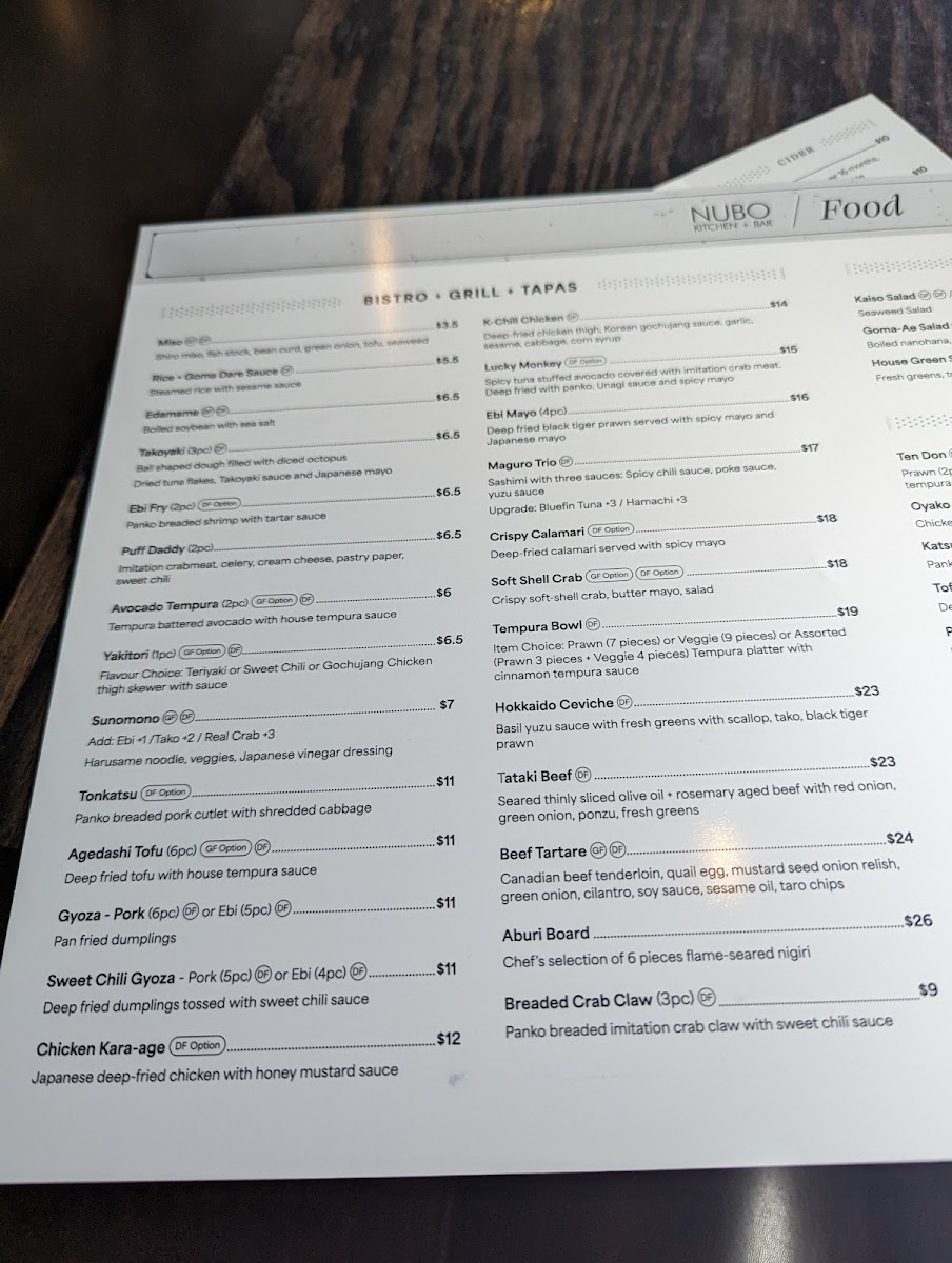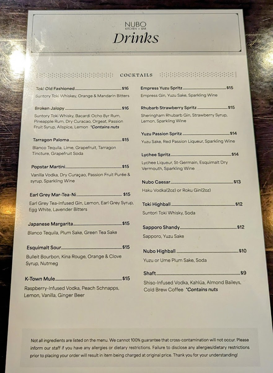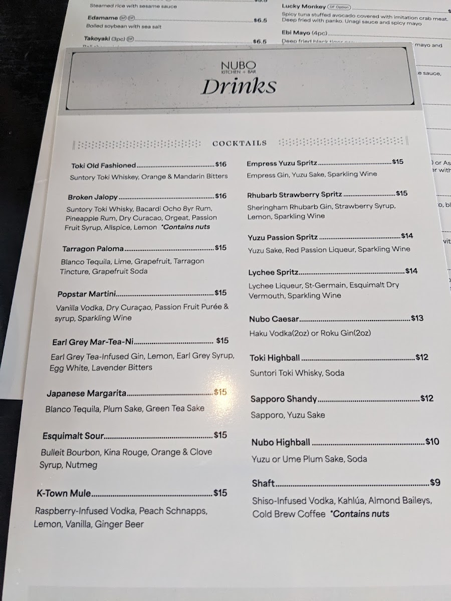 Nubo Kitchen Bar(Johnson Street Bridge Location) Menu
